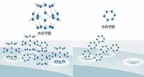 小分子团水更容易进入组织细胞,饮用小分子团水可以将更多水份和营养带入细胞,同时将细胞中的毒素更好地排出。小分子团水的强渗透力、强溶解力、强扩散力、高含氧量及高代谢能力等能力,就是抗衰老的秘密。市面上很多高昂价格的美容保湿水,理论上就是这些小分子团水。